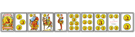 Para el juego se emplea la baraja española de 40 cartas. El valor de las cartas ordenadas de mayor a menor es: